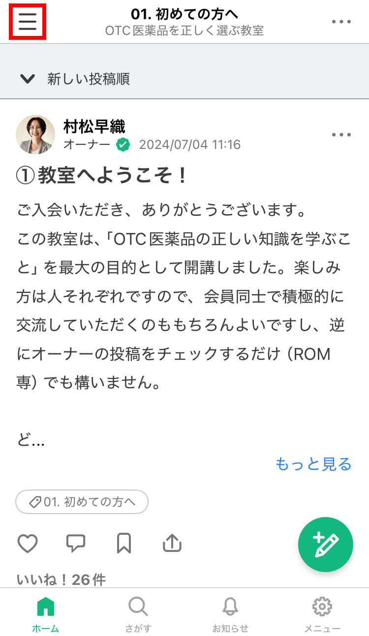 「医薬品の接客・業務に関するオーナーへの質問」というタイトルの投稿をクリック