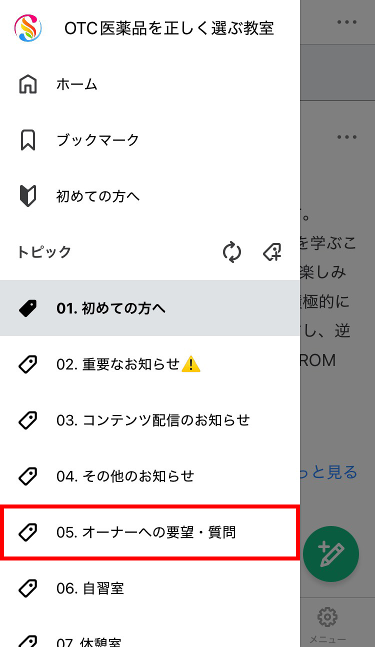 「OTC医薬品を正しく選ぶ教室」の「会員専用コミュニティ」を確認してください。